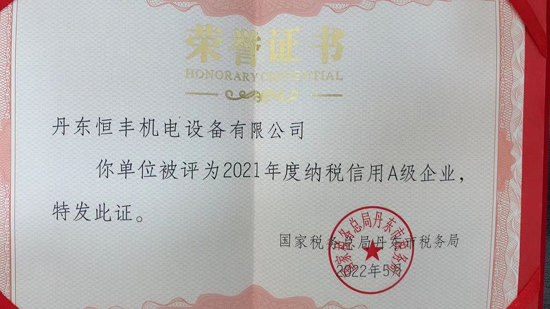丹東恒豐喜獲“納稅信用A級(jí)企業(yè)”稱號(hào)